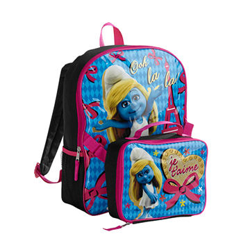 Model No锛欳ustomized school bag, frozen with lunch bag set, sized 15'' H x 12'' W x 4'' D |