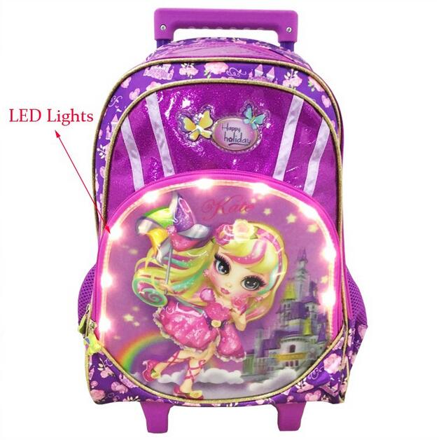 Model No锛歂ewest LED Lights 3D EVA Purple Kids School Trolley Bag for Girls |
